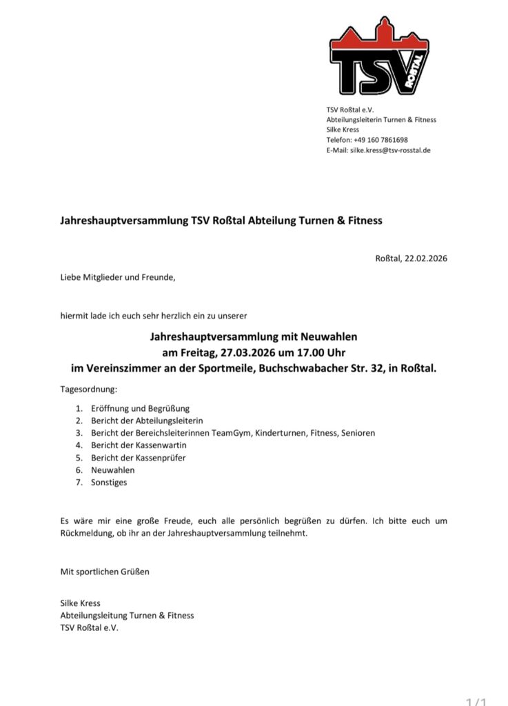 Einladung zur Abteilungsversammlung Turnen