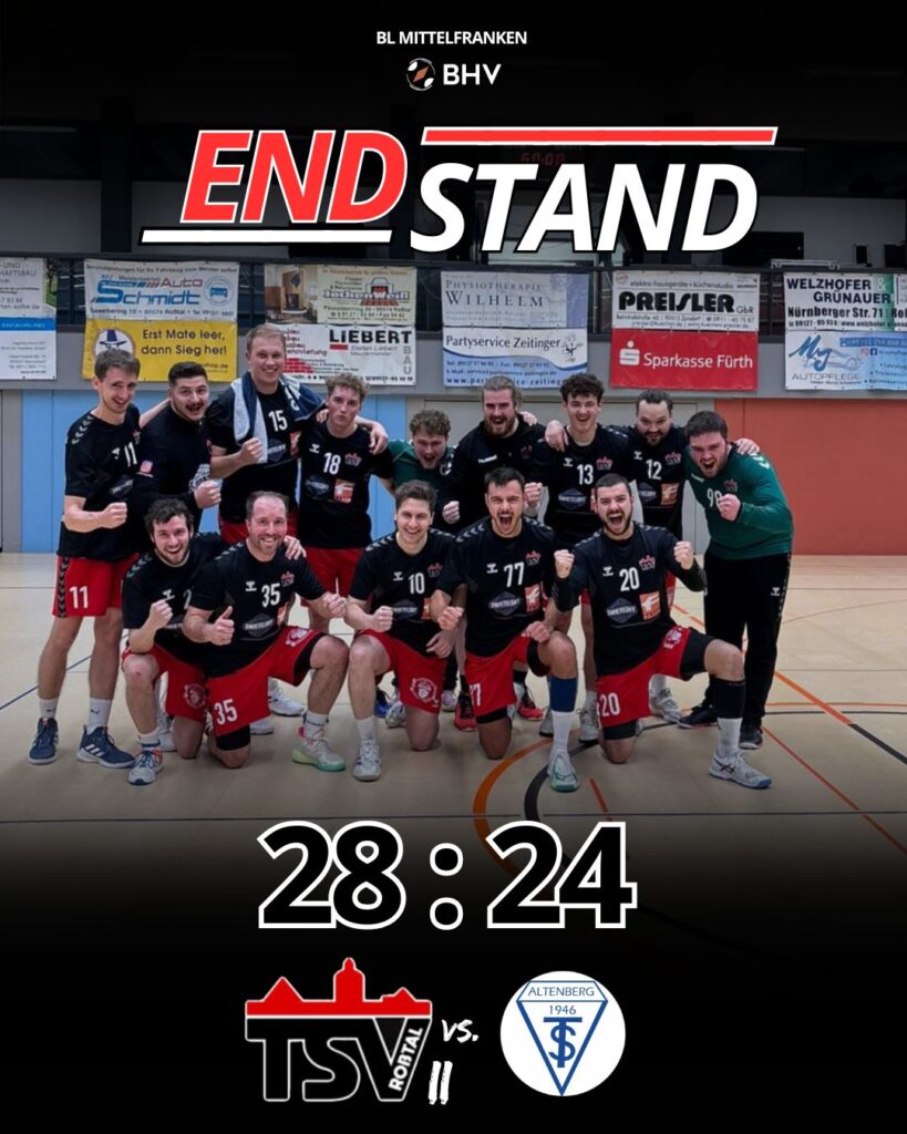 Nichtsdestotrotz änderte sich in der zweiten Halbzeit wenig. Altenberg nutze seine gesamte Erfahrung -und einige Fehler der Zwädden gekonnt aus. So gestaltete sich der Spielstand, trotz gefühlt weiterhin guter Leistung der Zwädden, durchgehend ausgeglichen. Die Gäule aus dem Pferdetal ackerten dennoch unermüdlich und so gelang es der Zwädden sich ab der 51. Minute erstmalig mit mehreren Toren abzusetzen. Dabei spielte auch die taktische Entscheidung, in ein offensives Abwehrsystem zu wechseln und zunächst einen Mann rauszunehmen, später auf eine 5:1 Abwehr umzustellen, eine wichtige Rolle. So gelang es der Zwädden zum einen den entscheidungsstarken Kettner aus dem Spiel zu nehmen und zum anderen einige „einfache“ Tore per Ballgewinn und Gegenstoß zu erzielen. Der Vorsprung wurde bis zum Ende nicht mehr aus der Hand gegeben. Zum Schlusspfiff zeigte die Anzeigetafel ein aus Roßtaler Sicht versöhnliches Ergebnis: 28:24.